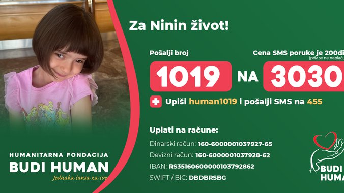 Kako bi Nina što pre otišla na lečenje potrebna je pomoć svih nas, jer Ninini roditelji nisu u mogućnosti da sami snose troškove lečenja pa se ovim putem obraćaju svim humanim ljudima da im pomognu.