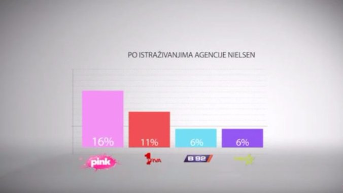 Televizija Pink je i ove srede bila najgledanija komericijalna televizija u Srbiji, posebno među ženama. Najnovija istraživanja agencije Nielsen Audience Measurement pokazuju da je u udarnom terminu bila gledanija od svih komercijalnih televizija zajedno, ali i Javnog servisa.