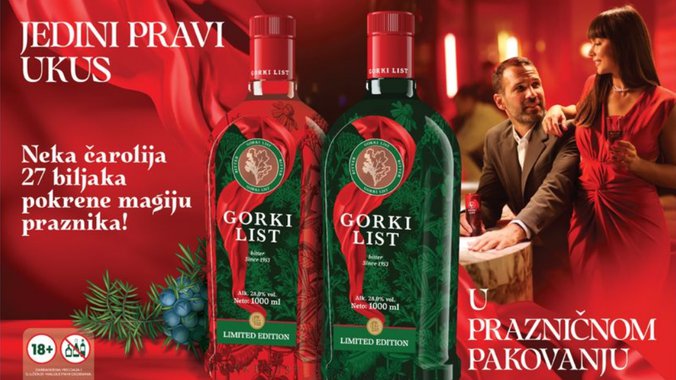 Gorki List tako još jednom dokazuje svoju inovativnost i poštovanje prema svim prijateljima i ljubiteljima njegovog jedinstvenog, originalnog ukusa, bez kompromisa kada su u pitanju kvalitet i tradicija. Limitirano izdanje praznične boce Gorkog Lista biće dostupno i njegovim ljubiteljima u regionu.
