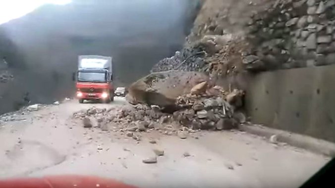 Gotovo čitavo brdo juče po podne obrušilo se na put i putari su uspeli da osposobe deo saobraćajnice, tako da se tokom noći saobraćaj odvijao jednom kolovoznom trakom.