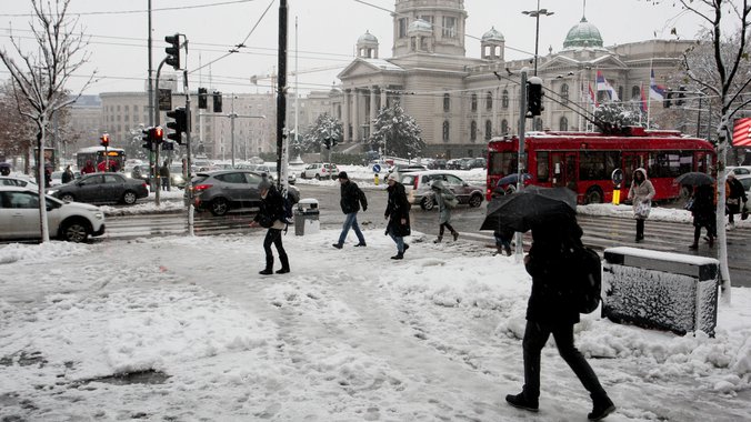 I dok tokom prepodneva na severu i zapadu Srbije i u Beogradu bude bilo osetno hladnije sa kišom, susnežicom i snegom, uz temperature od 1 do 5 stepeni, na jugu i jugoistoku biće suvo i dalje veoma toplo, uz temperature do 14-15 stepeni, ali će hladni front sredinom dana i popodne stići i do ovih predela Srbije, uz jaku kišu, a uz nagli pad temperature kiša će preći u sneg, uz jak severozapadni vetar. Istovremeno, na severu Srbije krajem dana padavine će prestati.