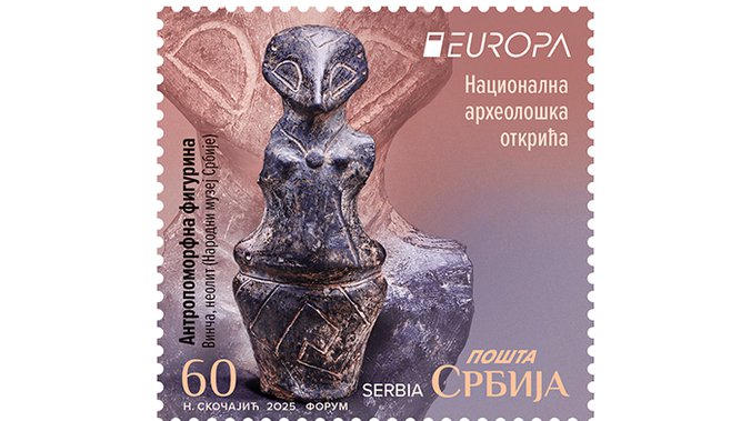 Marka Pošte Srbije sa motivom vinčanske kulture, takmiči se na evropskom izboru za najlepšu poštansku marku izdanja „Evropa” na temu „Nacionalna arheološka otkrića”, u konkurenciji 56 poštanskih maraka koje su objavile evropske poštanske uprave.