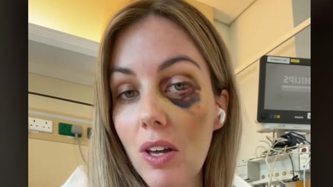 "Bila sam bez svesti pet minuta", otkrila je, pokazujući modricu oko oka i ozbiljne povrede od pada.