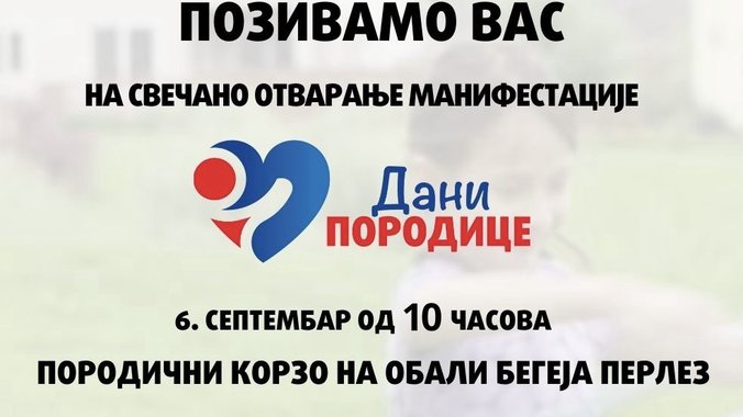 Ovogodišnji „Dani porodice“ biće održani u subotu, 6. septembra, u Perlezu kod Zrenjanina (porodični korzo na obali Begeja), sa početkom u 10 časova.