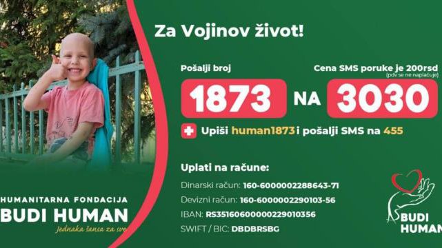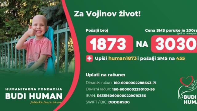 Vojin Miloradović, dečak od 5 godina, kome je dijagnostikovana Akutna mijeloidna leukemija (AML), a koji se trenutno nalazi na lečenju u Univerzitetskoj Dečijoj Klinici, treba da se pošalje na transplantaciju ćelija hematopoeze u bolnicu Bambino Gesu u Rimu.