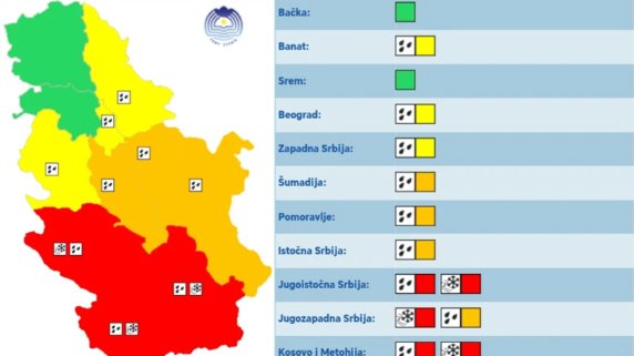 Zbog obilnih padavina, kiše, snega i leda, uključeni su „žuti“, narandžasti“ i „crveni“ meteoalarmi.