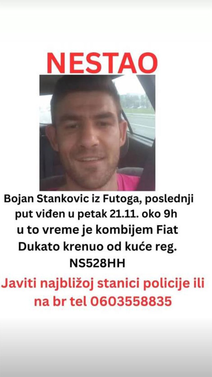 Kako navodi Instagram stranica "portal.futog", Bojan je u to vreme kombijem "fijat dukato" krenuo od kuće, kada mu se gubi svaki trag.