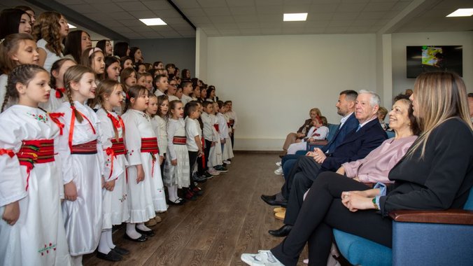 Kraljevski par su srdačno dočekali direktor škole Vladimir Bokić, nastavnici i učenici, koji su pripremili dirljiv muzički program u čast gostiju.