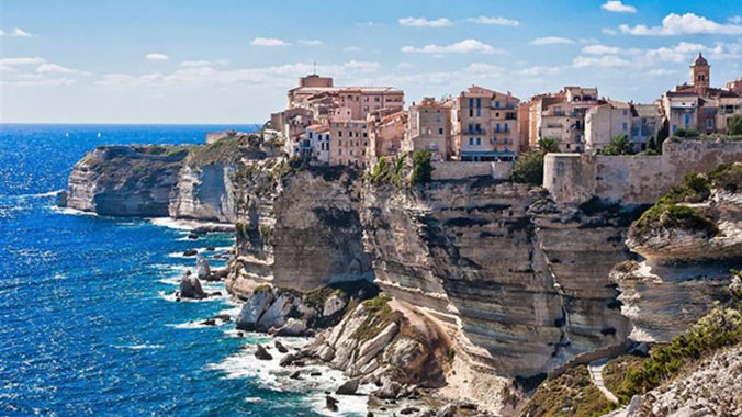 Ukras juga, podignut na nizu belih krečnjačkih stena, svojevrsni fenomen, sa starom citadelom. Verovatno najzanimljiviji grad Korzike, čisto mondensko mesto.