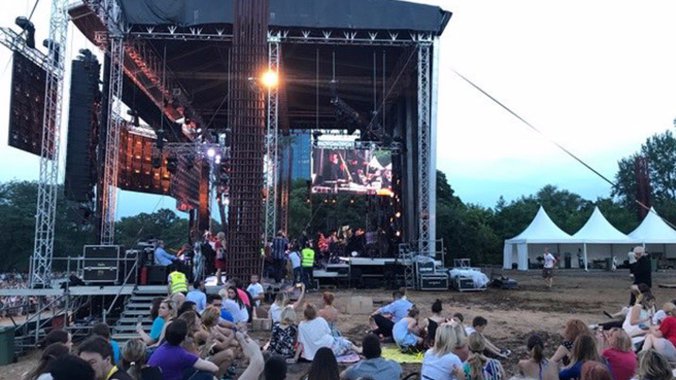 Ljudi još uvek pristižu na koncert, koji za sada protiče bez ikakvih ekscesa. Ljudi različitih generacija sede na stolicama na rasklapanje i različitim prekrivačima i uz osvežavajuća pića uživaju u koncertu.