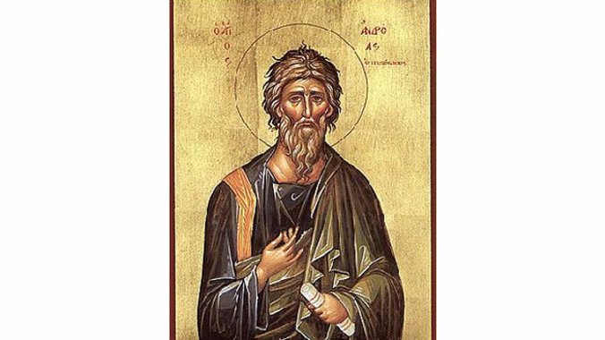 Prema predanju, Sveti Andrej bio je stariji brat apostola Petra i učenik Svetog Jovana Krstitelja, a Jevanđelje je propovedao u Vizantiji i Trakiji, u dunavskim zemljama, a potom u Rusiji i oko Crnog mora, u Epiru, Grčkoj i Peloponezu, gde je stradao.