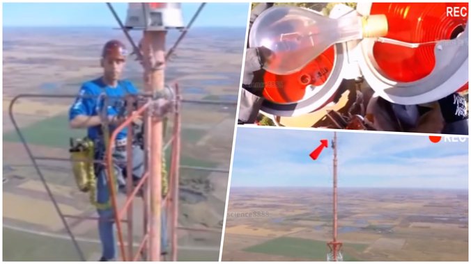Potrebna su četiri sata da se radnik popne na vrh tornja, a zatim promeni sijalicu koja se nalazi na vrlo tankom stupu. Ako vetar jako duva, postoji mogućnost da se stup počne njihati. "Najveća brzina vetra na vrhu tornja je gotovo 100 kilometara na sat. Ako ne zgrabite čvrsto stup, samo ćete pasti", objašnjava video.