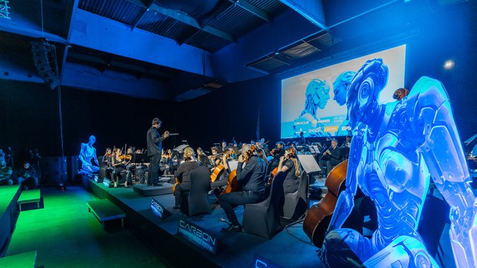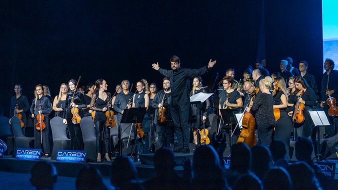 Veljko Kuzmančević, priznat srpski kompozitor, i muzički producent sa svojim simfonijskim orkestrom publici u Hangaru je predstavio autorsku kompoziciju za „Carbon eru“, koja spaja mašinu i čoveka kroz muziku koja budi dušu.