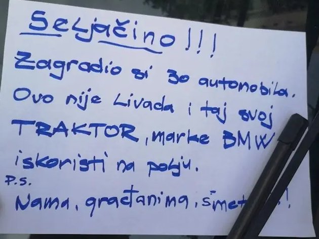 Jedan bahati vozač (ili žena vozač) je uz to bio/la jako kreativan/na u svom tom cirkusu oko parkiranja i poruka se, logično, brzinom munje proširila društvenim mrežama.
