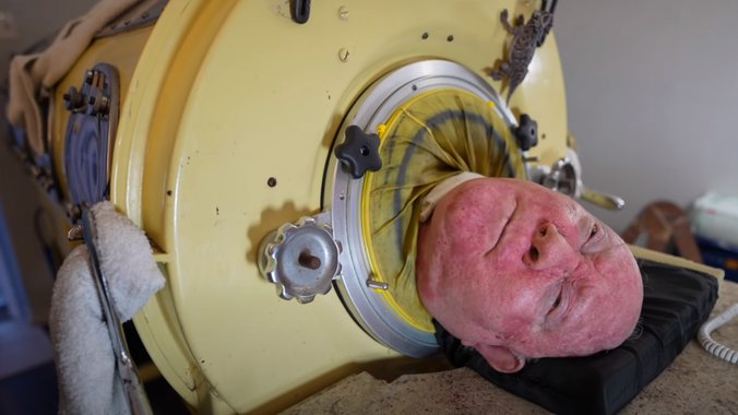 Zahvaljujući ovoj vrsti disanja, mogao je da provede neko vreme van gvozdene strukture. Ova veštačka pluća, zapravo su ventilator koji podseća na metalni kovčeg, zahtevaju da pacijent leži u njima dok mu je uređaj čvrsto stegnut oko vrata.
