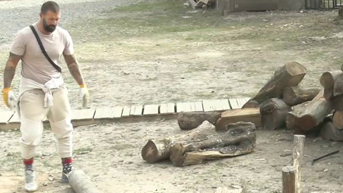 Dok su ostali učesnici radili poslove na imanju, Nikola Lakić je odlučio da je ipak važnije da poradi na svom fizičkom igledu, pa je uzeo improvizovane tegove i bacio se na vežbanje.