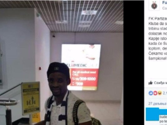 Fudbalski klub Partizan je na svojoj Fejsbuk stranici objavio vest o dolasku igrača iz Gvineje, sa Suminom fotografijom.