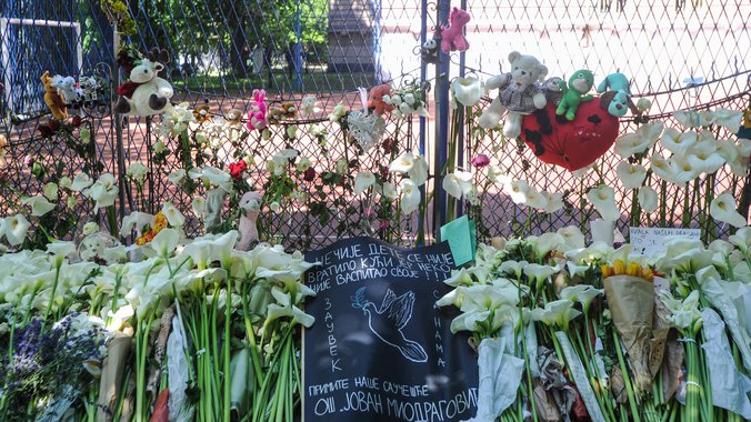 Fudbaleri Crvene zvezde zapalili su sveće ispred osnovne škole Vladislav Ribnikar, gde je prošle nedelje počinjen stravičan masakr u kojem je nastradalo devet osoba.