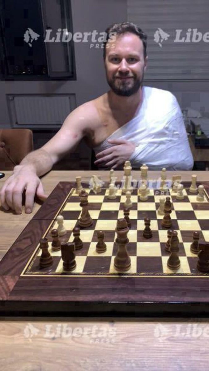 Crnogorski portal Libertas press objavio je novu fotografiju odbeglog vođe kavačkog klana Radoja Zvicera i to kako u zavojima nasmejan sedi i igra šah nakon što se oporavio od pokušaja atentat u maju 2020. u Kijevu.