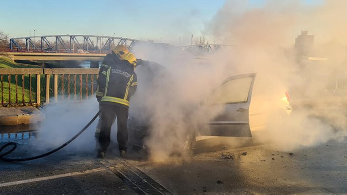 Velika količina dima širi se Požeškom ulicom na Banovom Brdu nakon usled paljevine jednog automobila na kolovozu.