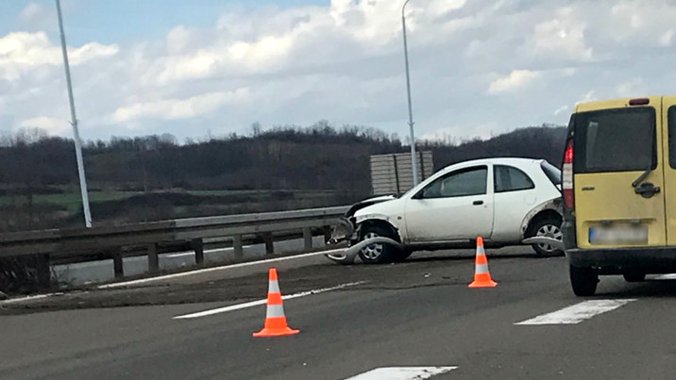 Posle naplatne rampe "Vrčin" na auto-putu došlo je do sudara automobila Folksvagen Pasat i Ford Ka.
