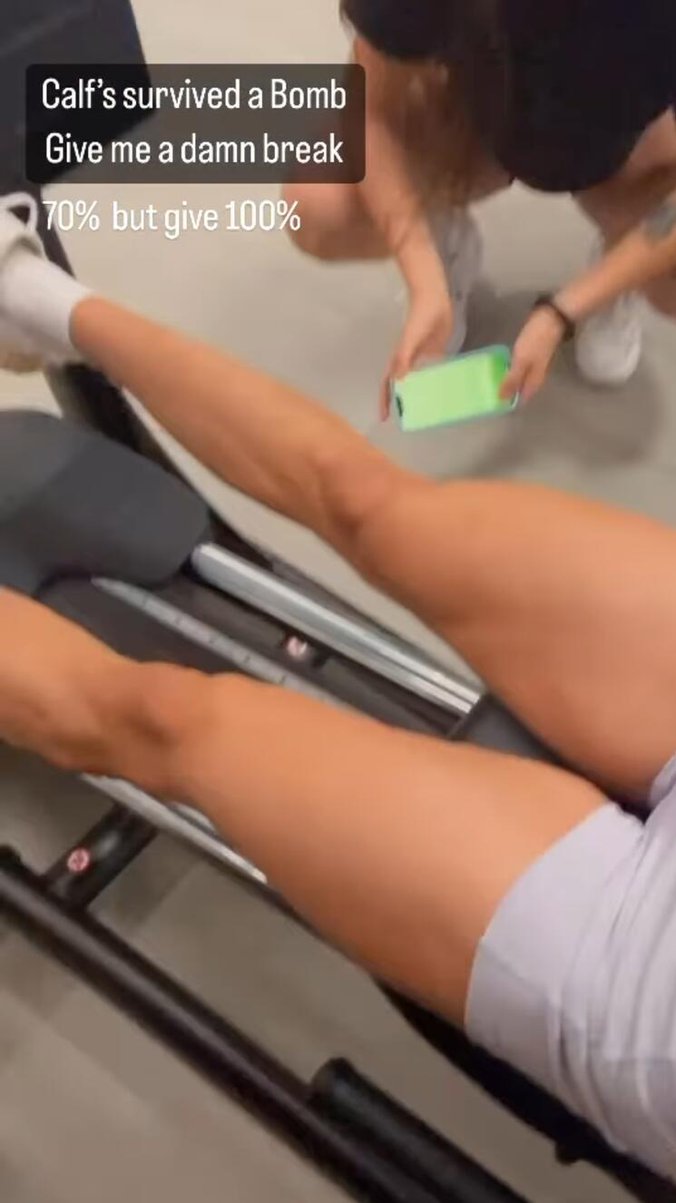 "Treneru, preživela sam bombu, daj mi prokleti odmor! Dajem 100 odsto od sebe, ali sam se oporavila 70 odsto", napisala je Olac uz snimak iz teretane, dok kamerom pokazuje desnu nogu koja ima vidljive ožiljke.