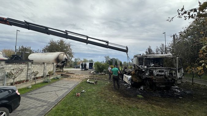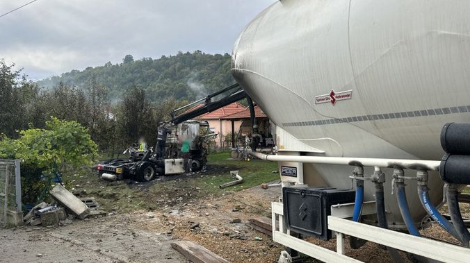 Prema nezvaničnim informacijama sa terena, vozač teretnjaka je izgubio kontrolu nad vozilom nakon što je uočio da nešto na cisterni gori, potom je sleteo sa puta i uleteo u obližnje dvorište.