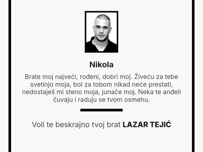 - Hajduče, lavljeg srca. Dušo plemenita. Neka tvoja energija i najlepši osmeh osvetle naš put. Baš onako kako si ti znao, bratski i svim srcem. Ostaćeš zauvek sa nama. Bio si naš brat, bio i ostaćeš. Junačko će ti ime živeti, vekovima! - napisano je u jednoj čitulji uz potpis ''vole te braća iz Crne Gore''.