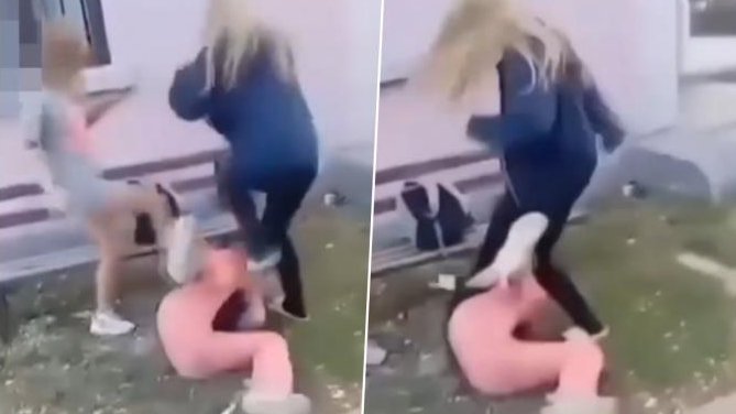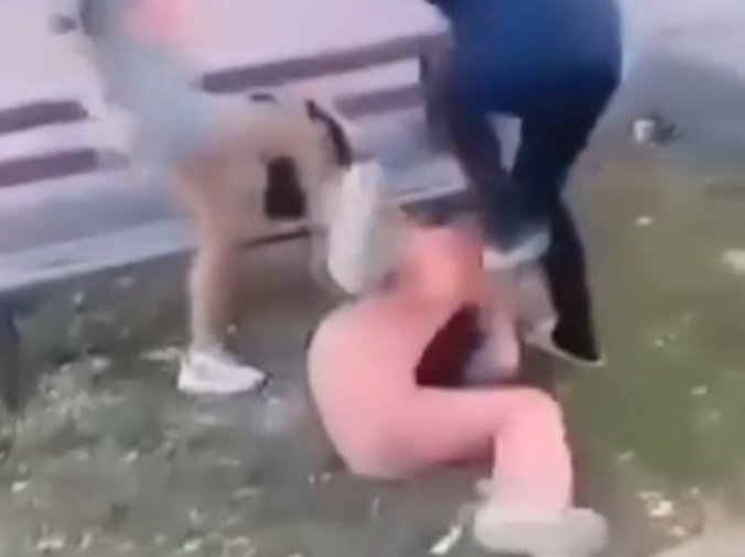 Na snimku se vide dve devojčice koje brutalno prebijaju treću, šutiraju je i gaze po glavi, dok sve to snima jedan dečak.