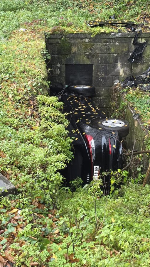Čak ni osobe koje su prošle magistralom minut posle ove nesreće nisu mogle da primete crni automobil skriven u propustu.