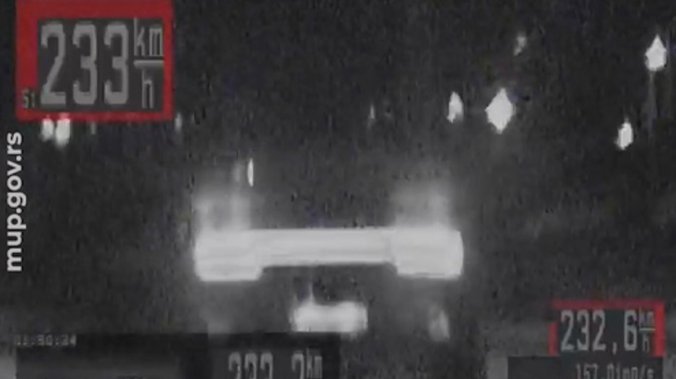 Tokom sprovođenja akcije pojačane kontrole saobraćaja, pripadnici Uprave saobraćajne policije presretačem su jutros oko 2 časa zaustavili M. V. (26) koji je na auto-putu Beograd - Novi Sad, kod Surčina, vozio „porše“ brzinom od 233,2 kilometra na čas, na delu puta gde je brzina ograničena na 130 kilometara na čas.