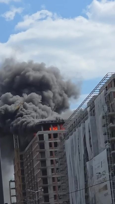 Gori krov na zgradi u izgradnji, u ulici Endiјa Vorhola.