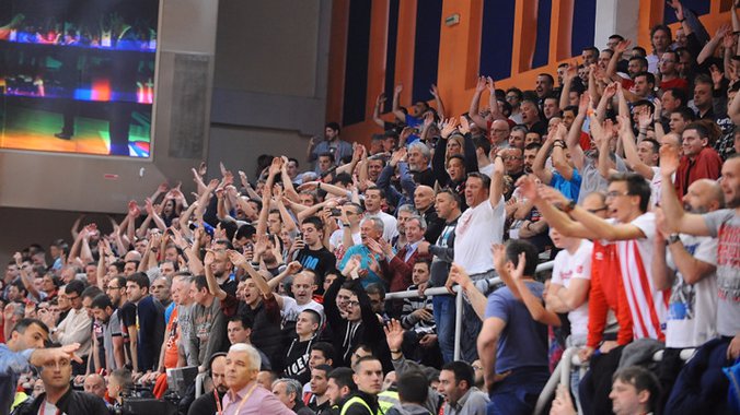 Na platou ispred dvorane Aleksandar Nikolić nekoliko stortina pristalica crveno-belih, uz baklje i pesmu, zahvalili su izabranicima Dejana Radonjića za impresivnu sezonu, kako u ABA ligi, tako i u Evroligi.
