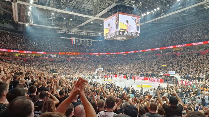 6. minut - I Smajlagić pogađa za tri. ludnica u Areni 21:11, potom Hezonja smanjuje 21:13