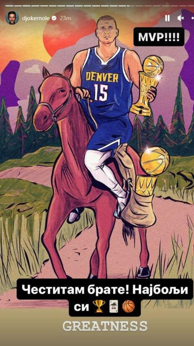 "MVP!!!", pisalo je, potom je na ćirilici stajala čestitka i reči: "Čestitam brate, najbolji si", a ispod na englekom reč "greatness" ili prevedeno na srpski "veličina".