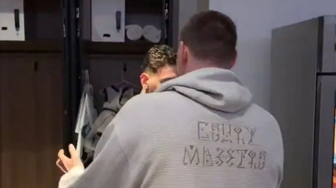 Naime, tokom pozdravljanja sa svima, on je na leđima svoje dukserice imao natpis na poprilično čudnom pismu.