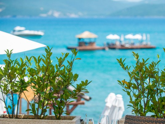 Plaža ovog hotela na površini od 3000 metara kvadratnih, sa otvorenim I zatvorenim bazenom I SPA centrom sa pogledom na more, idealno je mesto za sve hedoniste.