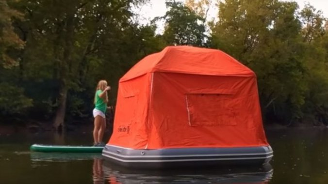 Reč je ugodnoj strukturi na naduvavanje veličine 243 x 243 centimetara, maksimalne visine od 190 centimetara, koja je napravljena od nepropusnog materijala. Podnicu čini splav na naduvavanje debljine oko 15 centimetara koja garantuje udoban san gde god se nalazili – na reci ili jezeru. Povrh svega, ceo šator je otporan na jake vetrove.