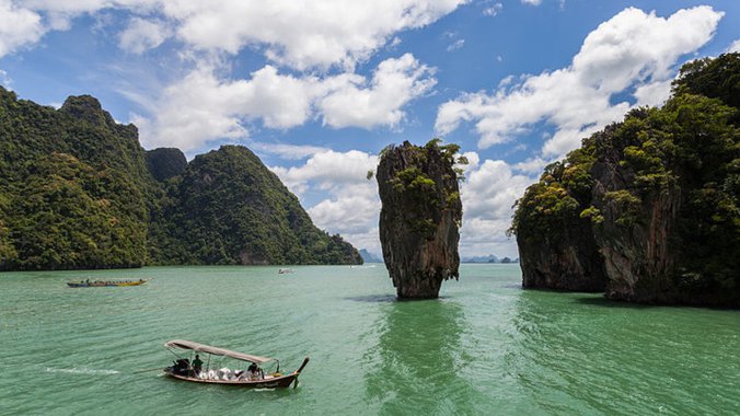 U zalivu Fang Nga na Tajlandu nalazi se ostrvo Kao Ping Kan, i dvadeset metara visoko ostrvce Ko Tapu, koji se zajedno nazivaju ostrvima Džejmsa Bonda.