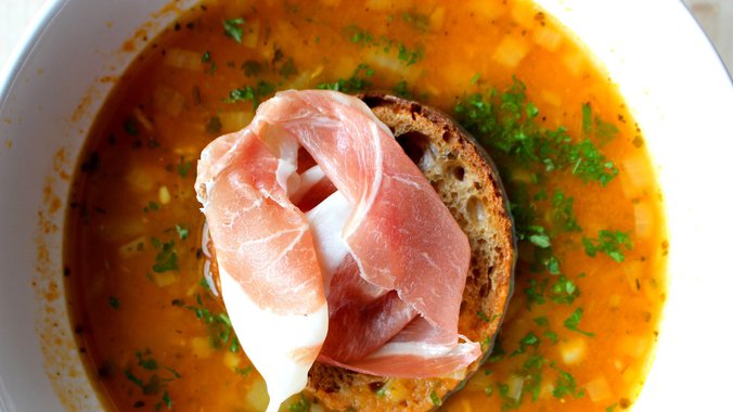 Na puteru napraviti zapršku od brašna i dolivati, po malo, 8 dl supe. Kad se malo zgusne, dodati kašu. Pomešati pavlaku i žumanca i polako dodavati u supu provrelu na umerenoj vatri.