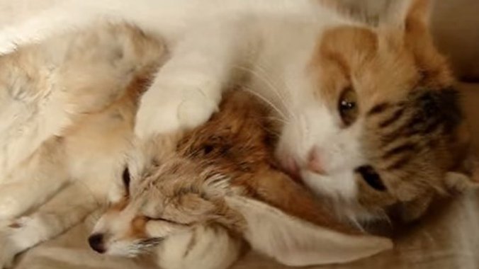 Ovo neobično drugarstvo osvojiće vaša srca. Mačka Lidel i fenek Mio uživaju da se maze. Mačka, oduševljena velikim ušim avog najboljeg prijatelja ne propušta priliku da ga umije. Ova jutarnja rutina vas neće ostaviti ravnodušnim.