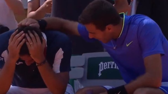 Del Potro ga je u nekoliko navrata grlio i pružao reči podrške, a u tome mu se pridružila i publika sa tribina.