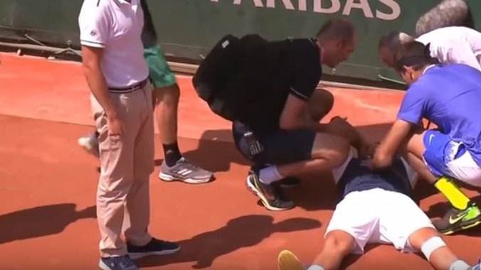 U toku je bio treći set meča kada se Španac Almagro uhvatio za koleno sa bolnom grimasom na licu i srušio na zemlju. Prvi mu je u pomoć pritekao sudija, a onda i Del Potro.