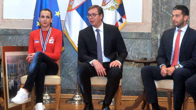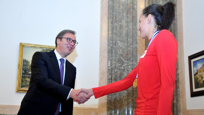 "Tačno je da nam ide bolje i za to su sportisti zaslužni. Podigli ste ugled Srbiji, zahvaljujući vama mi smo veoma popularni", rekao je Vučić odvojkašicama na čelu sa predsednikom Saveza Zoranom Gajićem, potpredsednikom Ivanom Miljkovićem i selektorom Zoranom Terzićem.