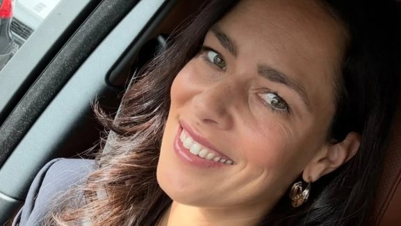Na fotografiji iz automobila, Ana pozira sa širokim osmehom, obučena u elegantno odelo, krem bluzu i zlatni nakit.