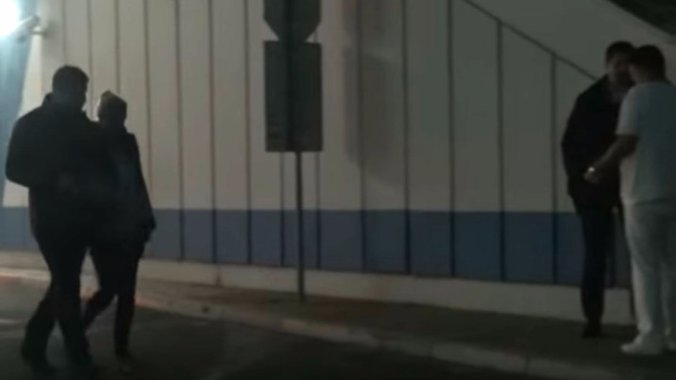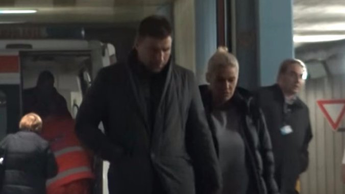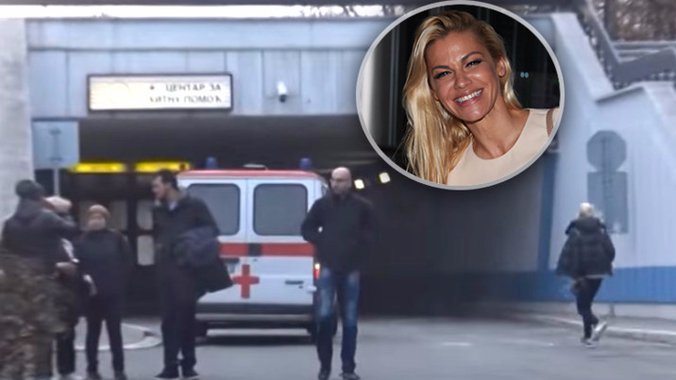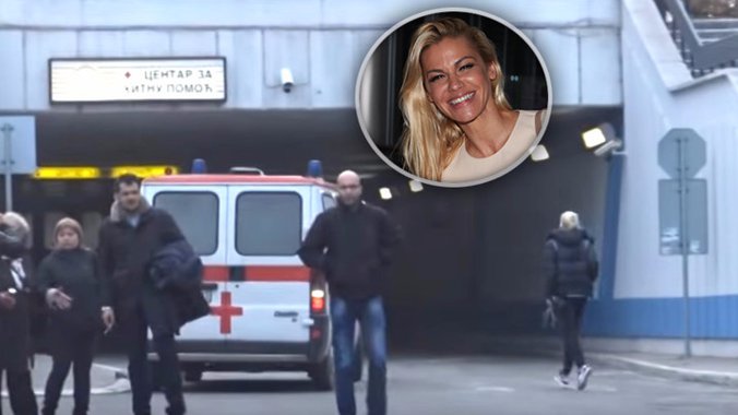 Ona je užurbano ušla na glavni ulaz Centra za Hitnu pomoć, da bi posle nekog vremena izašla pod ruku sa suprugom Ljubom Jovanovićem.