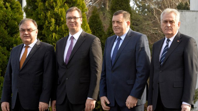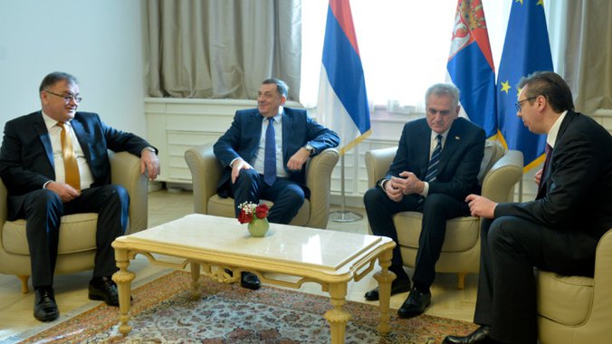 Posle sastanka u Beogradu, predsednik Srbije Tomislav Nikolić, premijer Aleksandar Vučić, predsedavajući Predsedništva BiH Mladen Ivanić i predsednik Republike Srpske Milorad Dodik, ocenili su da zahtev za reviziju nanosi štetu odnosima u regionu.