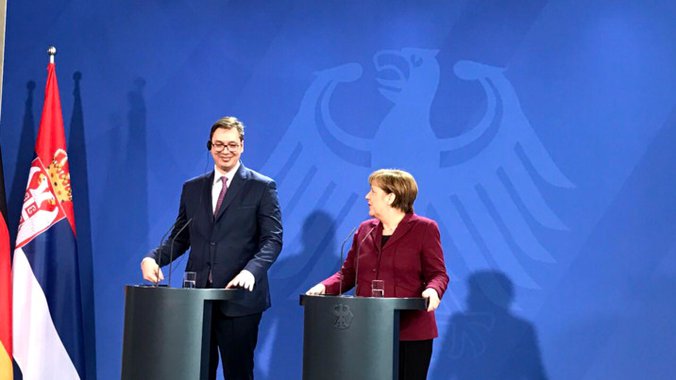 Predsednik Vlade Srbije se zahvalio Merkelovoj na velikoj pažnji koju je poklanjala zapadnom Balkanu. - Danas ćemo razgovarati o pitanjima regionalne stabilnosti, to je važno pitanje i za Evropu, mi smo puno napora načinili. Sutra putujem u Sarajevo, važno je da sarađujemo što više i obezbednimo slobodan protok kapitala u regionu. Uz podršku EU moramo očuvati mir i stabilnost. Zapadni Balkan je zanačajan za rast u celoj Evropi - rekao je Vučić, ocenivši da je Srbija na dobrom putu što se ekonomije tiče.Srbija je postala veoma pouzdan partner i Nemačkoj i Evropskoj uniji, razgovarali smo, ali smo i teške stvari sprovodili u delo, mislim da smo tim zaslužili i poštovanje najznačajnije države u Evropi. Zadovoljni smo načinom na koji Nemačka tretira Srbe, koji ovde žive i rade, istakao je Vučić.