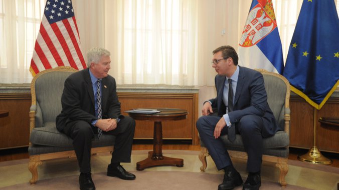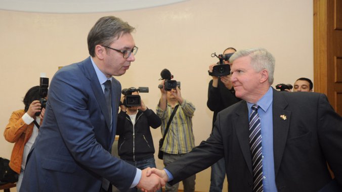Premijer Srbije i američki ambasador razmenili su mišljenja i o pitanjima koja su od zajedničkog interesa, razmotrili su situaciju u regionu, te istakli odgovornu politiku Srbije kao faktora mira i stabilnosti na Zapadnom Balkanu.