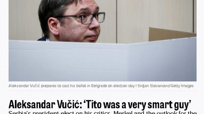 Srpski premijer Aleksandar Vučić, dao je prvi intervju za Politiko od kada je velikom većinom pobedio na predsedničkim izborima.